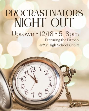 Still have a few gifts left on your list? Uptown Pitman has you covered! Join us for Procrastinators Night Out on Thursday, December 18 from 5–8 PM and wrap up your holiday shopping in style.